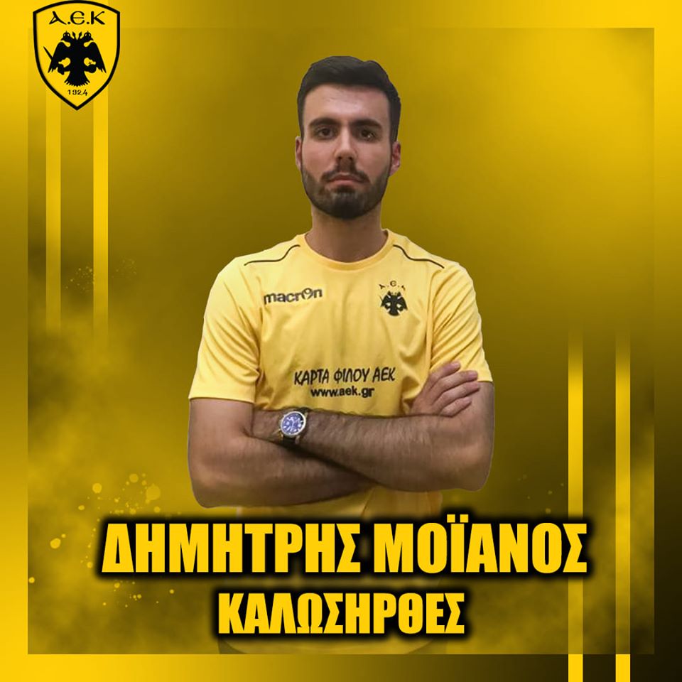 Η ΑΕΚ βρίσκεται στην ευχάριστη θέση να ανακοινώσει την έναρξη της συνεργασίας της με τον Δημήτρη Μοϊάνο. Ο 21χρονος (18/12/1998) πασαδόρος, ύψους 1,90 μ., υπέγραψε μονοετές συμβόλαιο και εντάσσεται στο δυναμικό της ανδρικής ομάδας βόλεϊ του Συλλόγου.