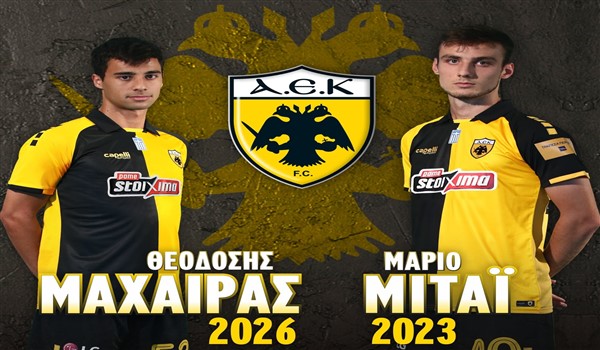 Ποδοσφαιριστές της ΑΕΚ για τα επόμενα πέντε και δύο χρόνια αντίστοιχα θα είναι οι Θεοδόσης Μαχαρίας και Μάριο Μιτάι, όπως γνωστοποίησε η κιτρινόμαυρη διοίκηση.