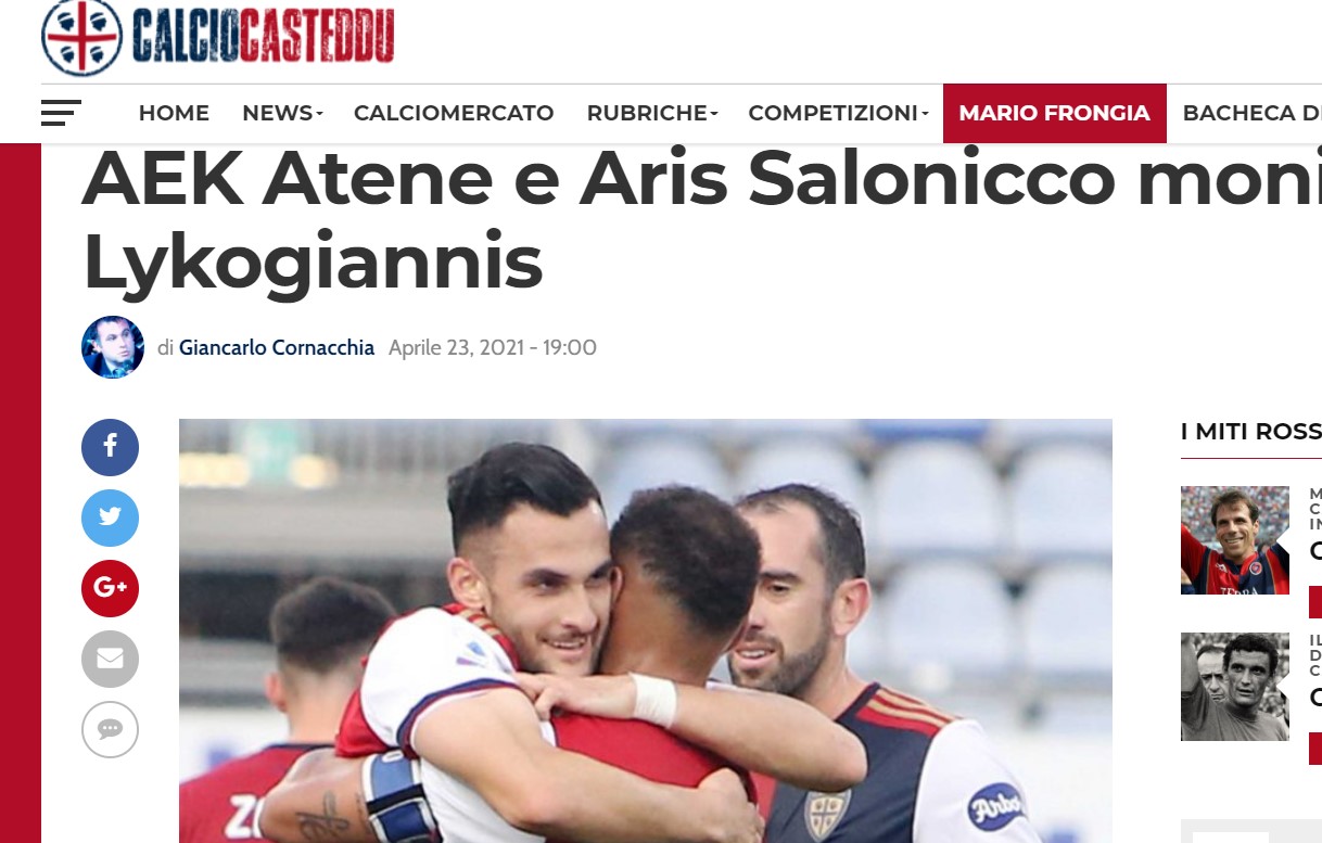 Ιταλικό δημοσίευμα κάνει λόγο για ενδιαφέρον της ΑΕΚ για τον Μπάμπη Λυκογιάννη, ο οποίος αγωνίζεται στην Κάλιαρι.