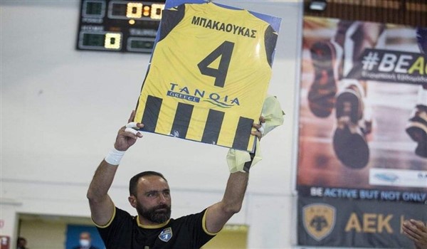 Πριν την έναρξη του αγώνα ΑΕΚ – Σαλαμίνα, ο Α’ Αντιπρόεδρος της ΑΕΚ και Διοικητικός Υπεύθυνος του τμήματος Χάντμπολ, κ. Σταμάτης Παπασταμάτης, βράβευσε τον Χριστόφορο Μπακαούκα που αγωνίζεται με τη φανέλα των νησιωτών και που διέπρεψε για μια δεκαετία με τη φανέλα της ΑΕΚ.