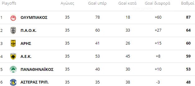 Όλα λοιπόν θα ξεκαθαρίσουν την Κυριακή για την 3η θέση μεταξύ ΑΕΚ και Άρη.
