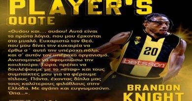 «Έγινε το τρίτο δεκάλεπτο μιας σειράς. Και οι δύο ομάδες τιμούν το ελληνικό πρωτάθλημα. Ο προμηθέας ήταν ανταγωνιστικός. Το βάρος έπεφτε σε εμάς. Μας αποσυντόνισαν οι απουσίες του Προμηθέα. Οι αποφάσεις μας ήταν κάτω από τις φάσεις που πρέπει και όπως είπα με τους παίκτες το παιχνίδι πρέπει να το σέβεσαι γιατί δεν μπορεί να σου δίνει συνέχεια θετική αύρα. Πρέπει να αγωνίζεσαι να το κερδίζεις. 3-4 φορές ήρθε ο Μέικον να μου πει “εγώ φταίω”. Είμαστε χαρούμενοι για την ομάδα που αντέδρασε σε μια «κακή» επιθετική μέρα. Ετοιμαζόμαστε για το επόμενο παιχνίδι. Συγχαρητήρια στον Προμηθέα».