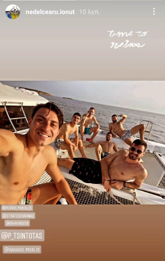 Συγκεκριμένα οι Νεντελτσεάρου, Τσιντώτας, Μπακάκης, Μάνταλος, Σάκχοφ και Σβάρνας πέρασαν στιγμές χαλάρωσης πάνω σε σκάφος πριν φύγουν για την Ολλανδία.