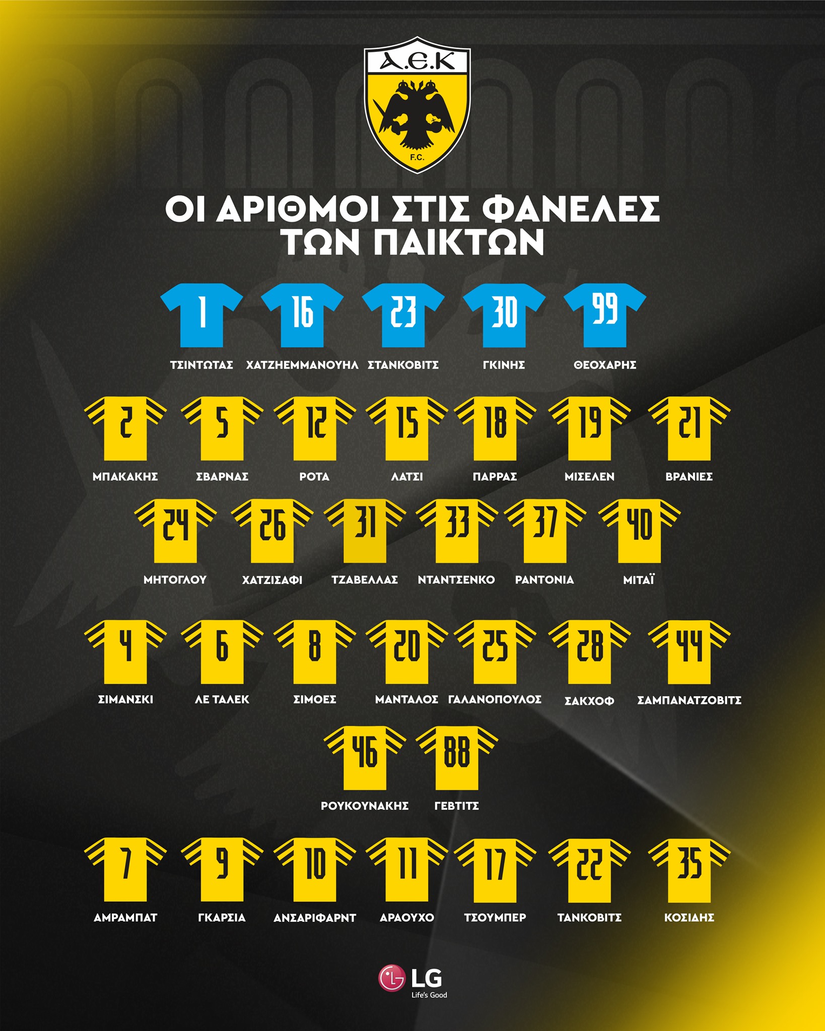 Η ΠΑΕ ΑΕΚ έδωσε στη δημοσιότητα τους αριθμούς των ποδοσφαιριστών της για τη σεζόν 2021-22.