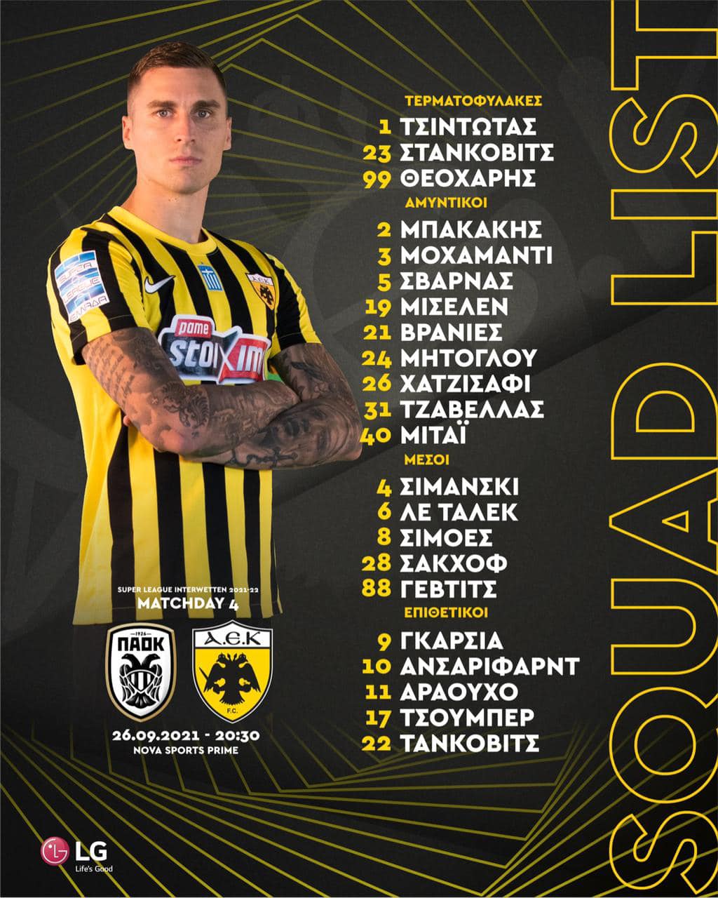 Με Σιμόες και Μοχαμάντι η αποστολή της ΑΕΚ στην Τούμπα