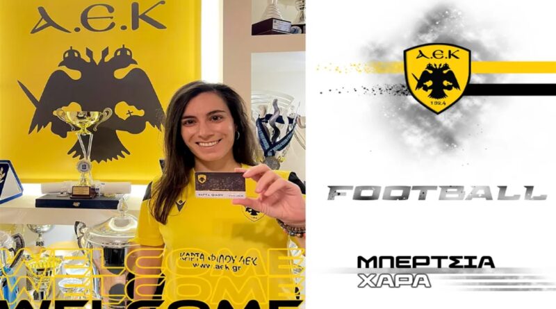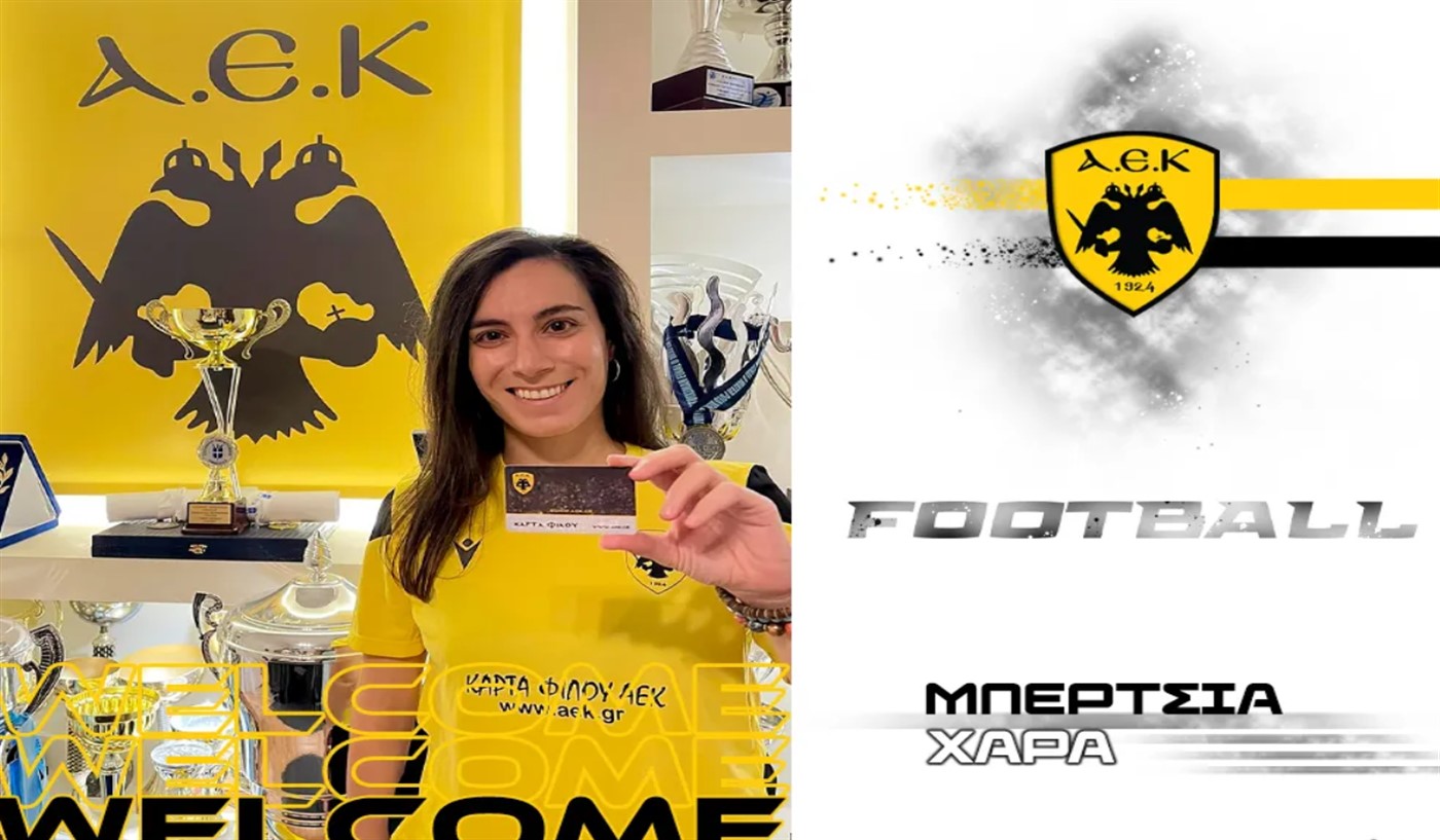 Η ΑΕΚ βρίσκεται στην ευχάριστη θέση να ανακοινώσει την έναρξη της συνεργασίας της, με την Χαρά Μπερτσιά. Η 32χρονη (10/01/1989) μεσοαμυντικός θα ενισχύσει τη γυναικεία ομάδα ποδοσφαίρου του Συλλόγου.