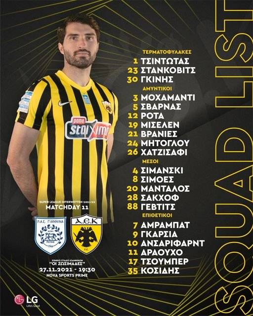 Έπειτα από το τέλος του προγράμματος ο Αργύρης Γιαννίκης ανακοίνωσε τις επιλογές του για την αποστολή του αυριανού (19.30) εκτός έδρας αγώνα πρωταθλήματος με τον ΠΑΣ Γιάννινα.