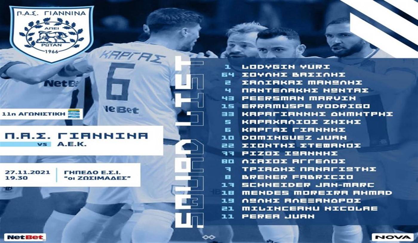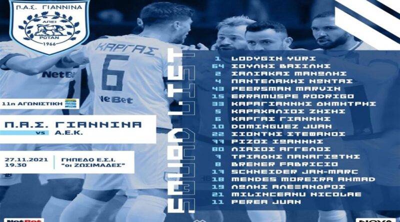 Χωρίς Γκαρντάφσκι αλλά με Μπρένερ η αποστολή του ΠΑΣ Γιάννινα