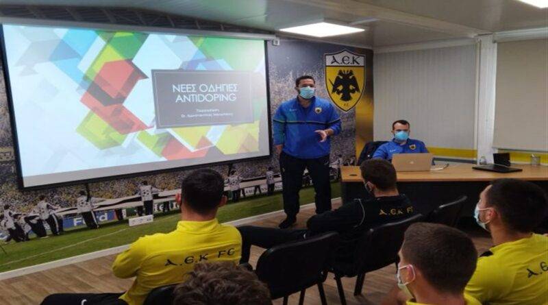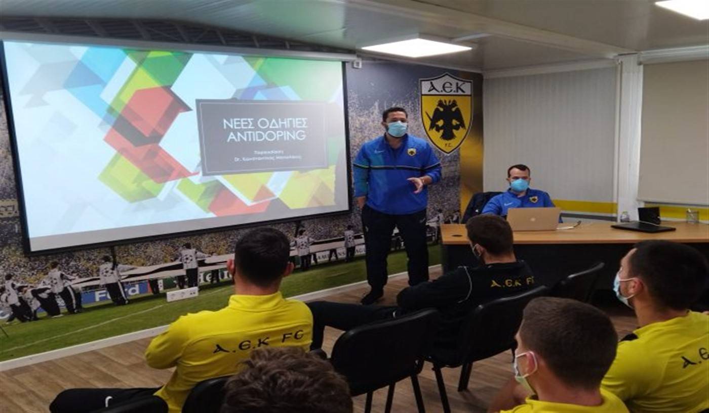 Ενημέρωση σχετικά με τις νέες οδηγίες της WADA αναφορικά με το ντόπινγκ στον αθλητισμό είχαν οι ποδοσφαιριστές και το επιτελείο της ΑΕΚ Β σήμερα το πρωί στα Σπάτα.