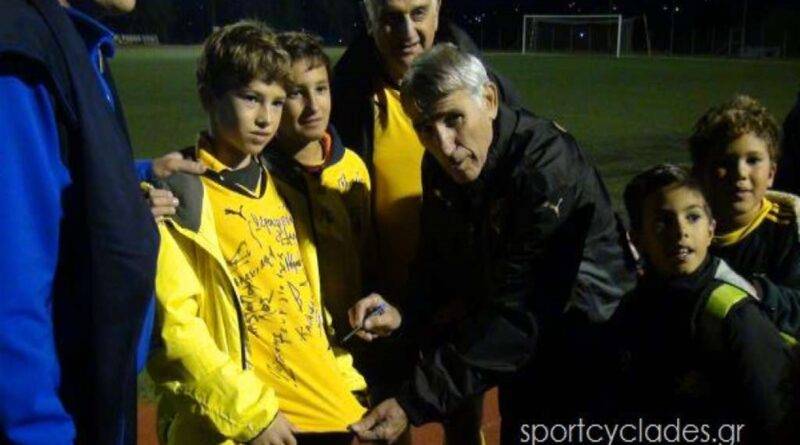 Μάλιστα, ο νυν διοικητικός ηγέτης της KAE AEK, Μάκης Αγγελόπουλος είχε αγωνιστεί στο ματς με τη φανέλα του Νηρέα του νησιού, με το οποίο διατηρεί διαχρονικά άρρηκτη σχέση (το στιγμιότυπο από το sportcyclades).