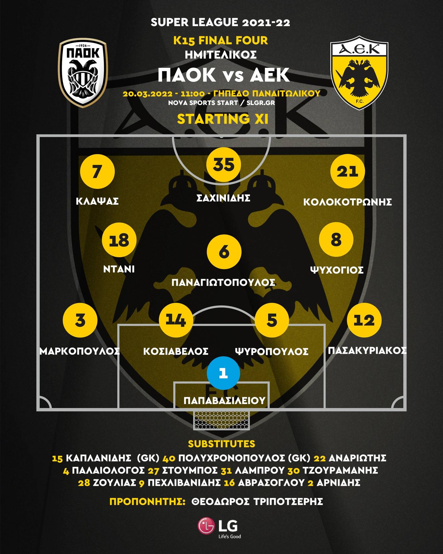 Δείτε ζωντανά την αναμέτρηση της ΑΕΚ με τον ΠΑΟΚ για τα ημιτελικά του Final 4 του πρωταθλήματος της Κ15. Σέντρα στις 11:00.