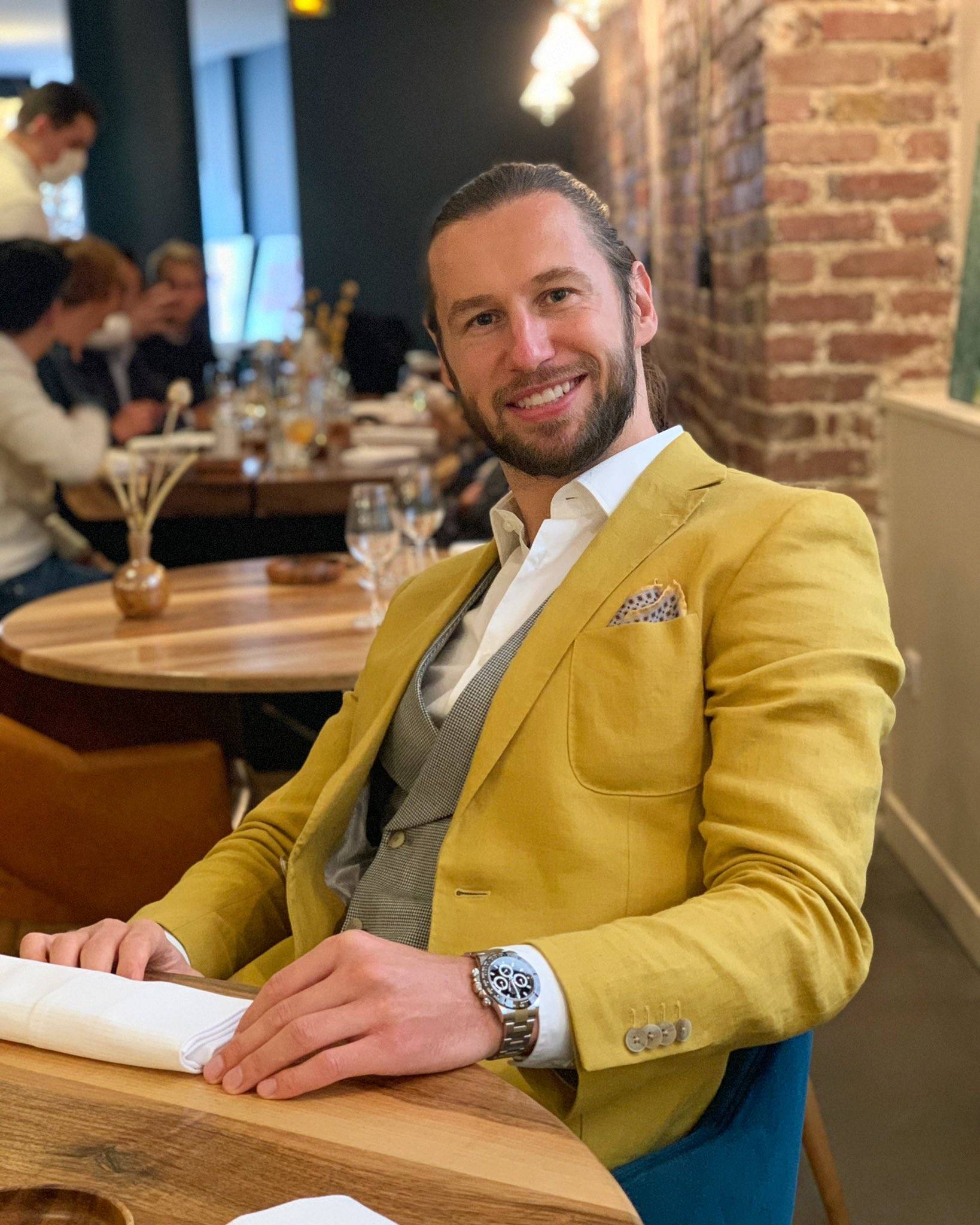 Δεν είναι απλώς ο ιδρυτής της Balamonte, μίας εταιρίας που ράβει πολυτελή κουστούμια, τα σχεδιάζει κιόλας, τα προβάρει και τα διαφημίζει.