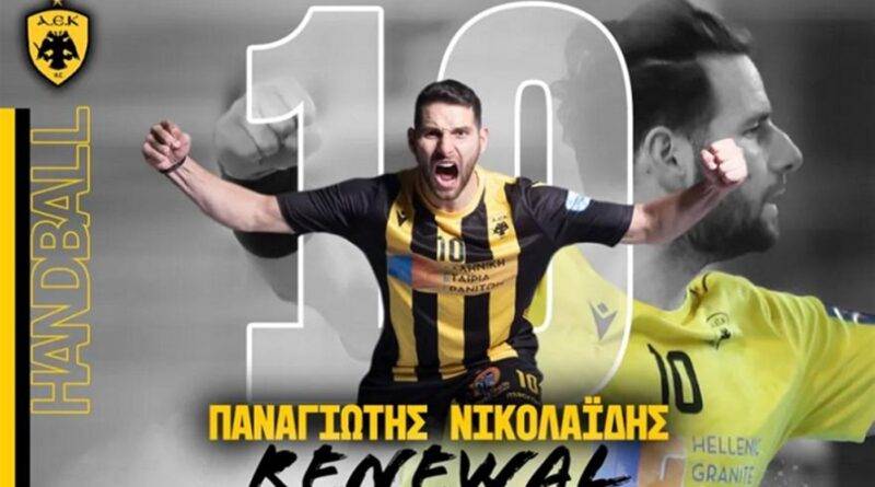 Η ΑΕΚ βρίσκεται στην ευχάριστη θέση να ανακοινώσει την ανανέωση της συνεργασίας της με τον Παναγιώτη Νικολαΐδη, ο οποίος θα παραμείνει αρχηγός της ομάδας Χάντμπολ για δύο ακόμα χρόνια!