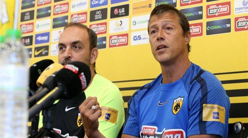 Για το πως η ΑΕΚ θα ανακτήσει τη νοοτροπία νικητή στα ντέρμπι: «Αν είχα αμφιβολία δεν θα είχα δεχθεί την πρόταση. Πιστεύω στη δουλειά που θα κάνουμε και σε κάθε παίκτη ξεχωριστά. Η ιστορία και το μεγαλείο της ΑΕΚ απαιτεί να είναι πρωταγωνίστρια. Για να είσαι πρωταγωνιστής πρέπει να έχεις δική σου ταυτότητα. Αυτή είναι η πρόκληση και θέλουμε να παλέψουμε για να είμαστε πρωταθλητές. Αυτή είναι η αλήθεια. Εγώ σέβομαι την ιστορία όλων των ομάδων και είναι όμορφο να παλεύεις και να είσαι πρωταγωνιστής».