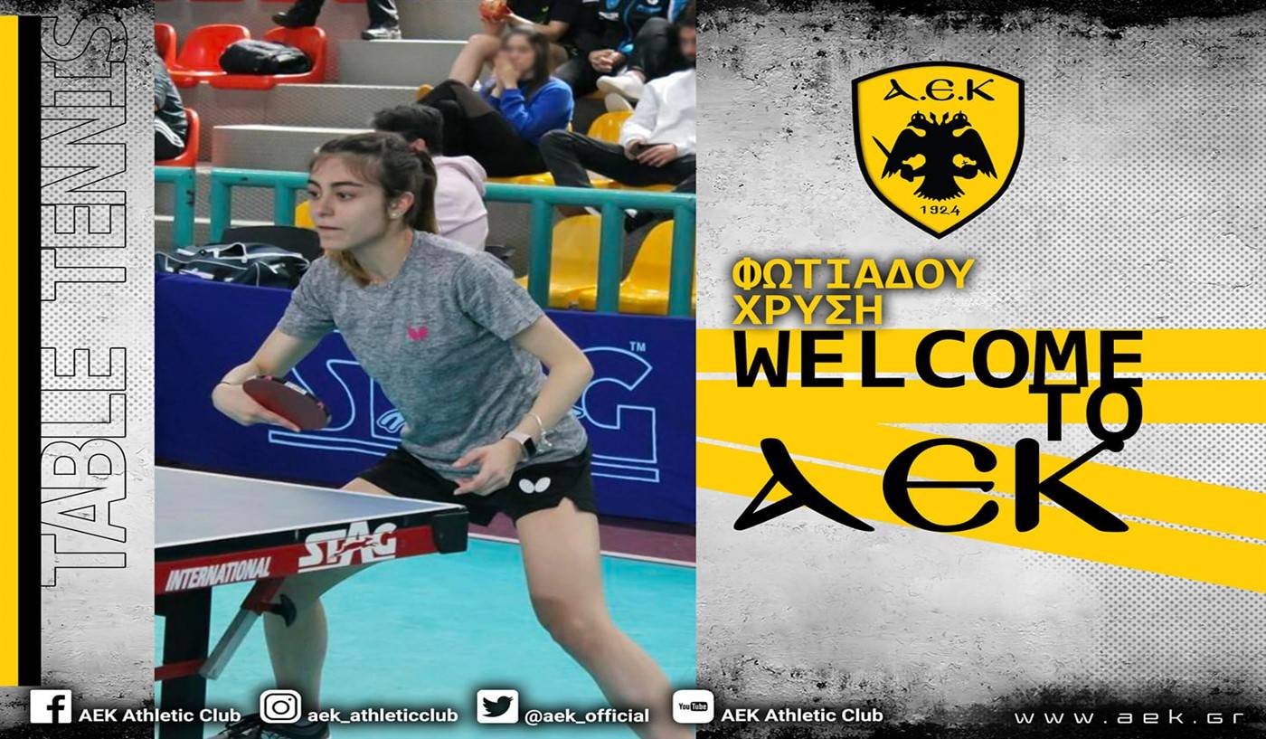 Η ΑΕΚ βρίσκεται στην ευχάριστη θέση να ανακοινώσει την έναρξη της συνεργασίας της με την Χρυσή Φωτιάδου. Η διεθνής 18χρονη δεξιόχειρας αθλήτρια εντάσσεται στο δυναμικό της γυναικείας ομάδας Επιτραπέζιας Αντισφαίρισης του Συλλόγου, έχοντας δικαίωμα συμμετοχής στο Κύπελλο Ελλάδος Γυναικών και στα Ηλικιακά Πρωταθλήματα.