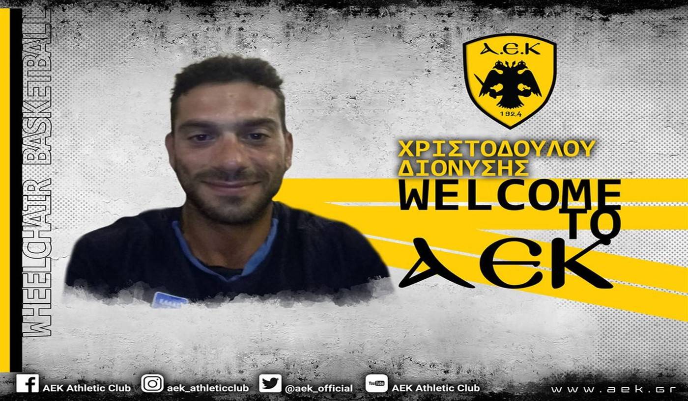 Η ΑΕΚ βρίσκεται στην ευχάριστη θέση να ανακοινώσει την έναρξη της συνεργασίας της με τον Διονύση Χριστοδούλου, ο οποίος εντάσσεται στο δυναμικό της ομάδας Μπάσκετ με Αμαξίδιο του Συλλόγου.