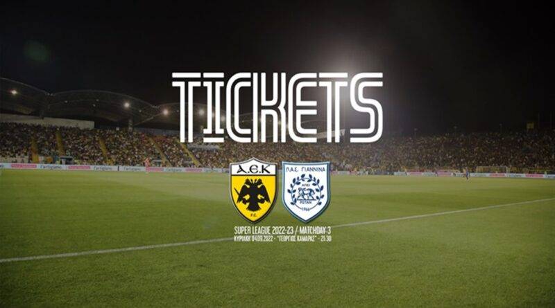 Τέθηκε σε κυκλοφορία ο περιορισμένος αριθμός διαθέσιμων εισιτηρίων για τον αγώνα ΑΕΚ – ΠΑΣ Γιάννινα, που θα διεξαχθεί στο γήπεδο «Γιώργος Καμάρας» της Ριζούπολης (4/9 – 21.30).