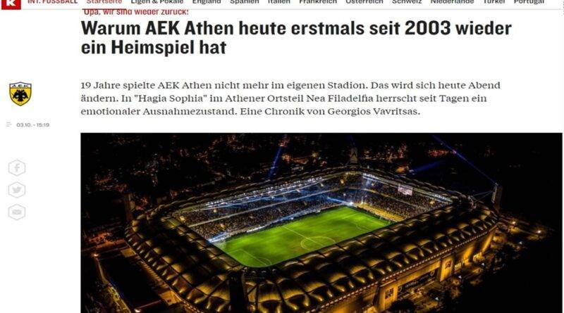 Το κορυφαίο αθλητικό Μέσο της Γερμανίας παρουσίασε όλο το χρονικό από την κατεδάφιση του «Νίκος Γκούμας» μέχρι την ανέγερση και τα εγκαίνια του νέου γηπέδου του «δικεφάλου».