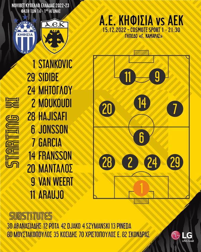 Η 11άδα της ΑΕΚ κόντρα στην Κηφισιά (photo)