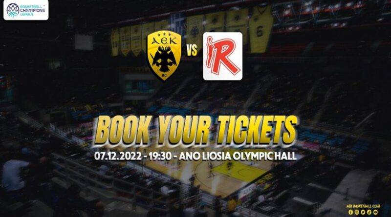 Η ΑΕΚ ΒC ανακοινώνει, ότι συνεχίζεται η (ηλεκτρονική) διάθεση εισιτηρίων για την αναμέτρηση της 5ης αγωνιστικής του Basketball Champions League, ανάμεσα στη «Βασίλισσα» και τη Ρέτζιο Εμίλια.