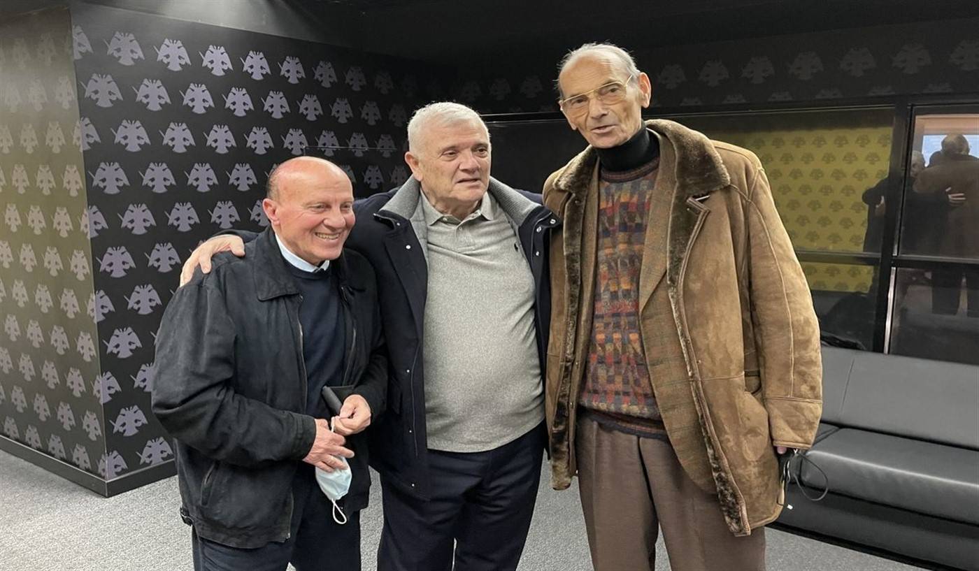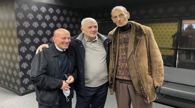 Η κουβέντα συνεχίστηκε με τον Δημήτρη Μελισσανίδη να αγκαλιάζεται στο τέλος με τις δύο δόξες, όπως και και με τη σύζυγο του Αντωνιάδη, Κατερίνα και την κόρη του Δομάζου, Θεόπη αποχαιρετώντας τους με μία εσάνς νοσταλγίας να πλανάται στην OPAP Arena.