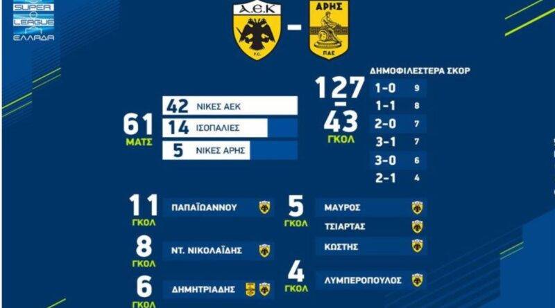 Οι αριθμοί του ΑΕΚ – Άρης από τη Super League
