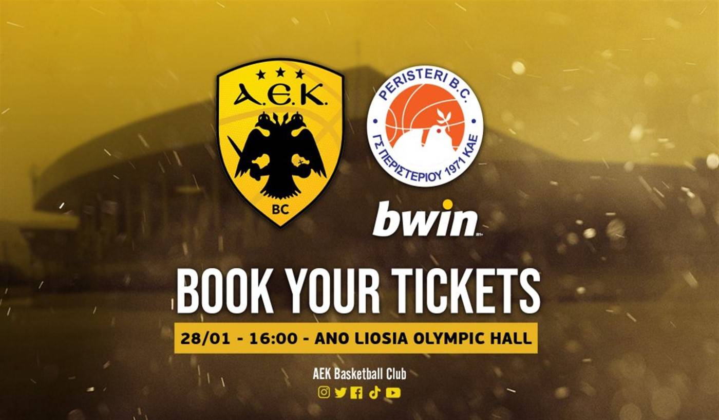 Η ΑΕΚ ΒC ανακοινώνει, ότι ξεκίνησε η ηλεκτρονική διάθεση εισιτηρίων για την αναμέτρηση της 14ης αγωνιστικής της Basket League, ανάμεσα στη «Βασίλισσα» και το Περιστέρι.