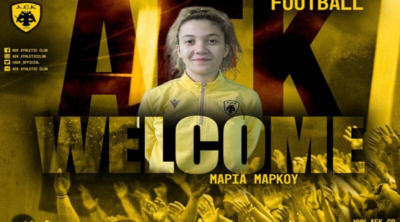 Η ΑΕΚ βρίσκεται στην ευχάριστη θέση να ανακοινώσει την έναρξη της συνεργασίας της με την Μαρία Μάρκου. Η 20χρονη (04/01/2003) αμυντικός εντάσσεται στο δυναμικό της γυναικείας ομάδας Ποδοσφαίρου του Συλλόγου.