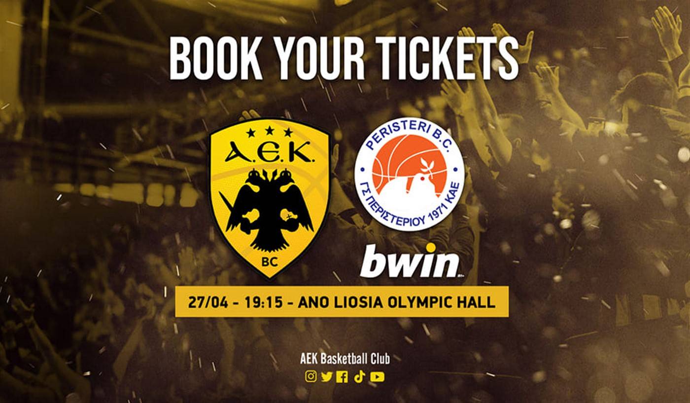 Η ΑΕΚ ΒC ανακοινώνει, ότι ξεκίνησε η ηλεκτρονική διάθεση εισιτηρίων για τη δεύτερη αναμέτρηση της Α΄ Φάσης PLAY OFFS 2022-2023, ανάμεσα στη «Βασίλισσα» και το Περιστέρι.