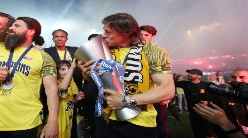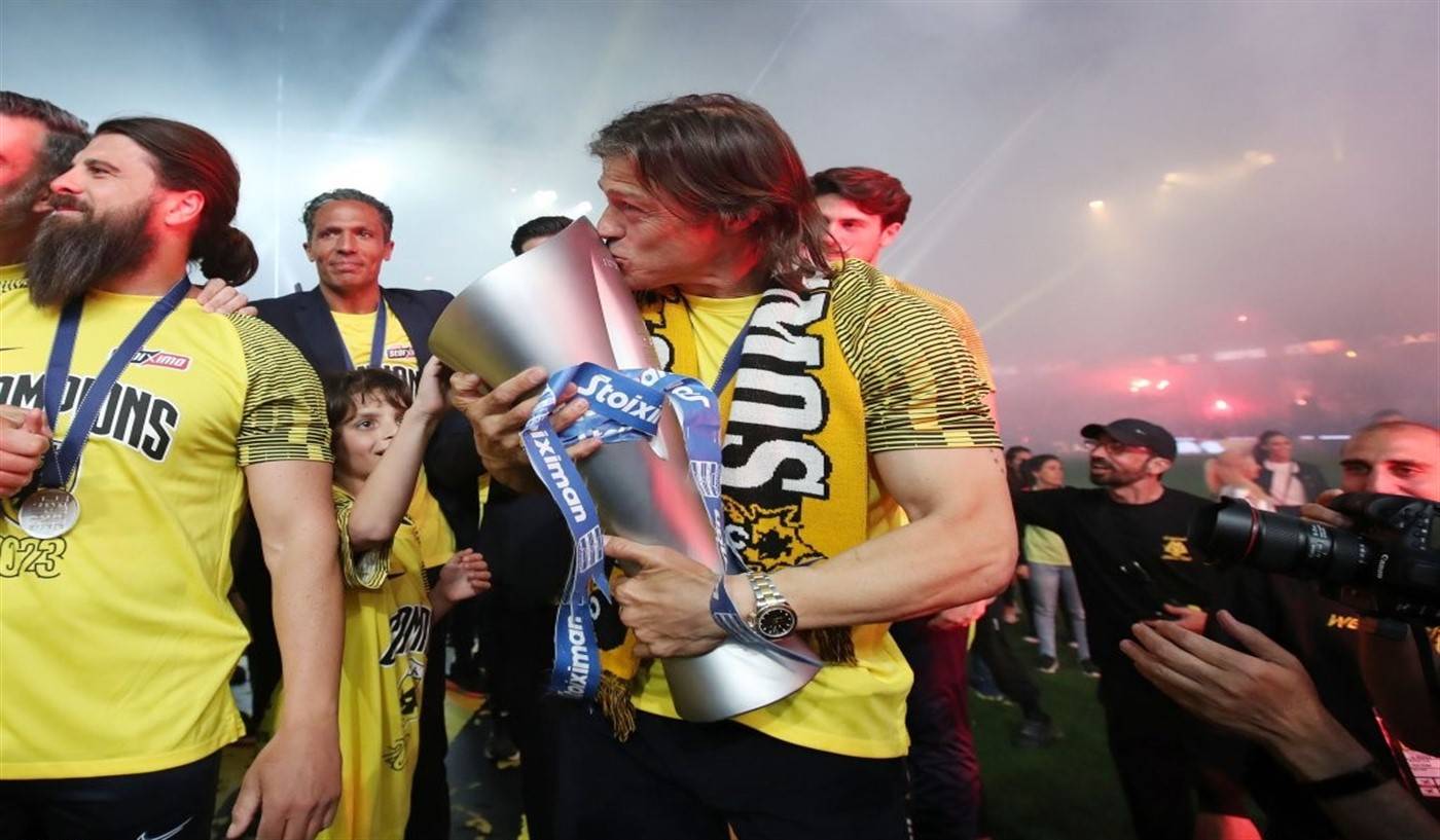 Στον έβδομο ουρανό, ο προπονητής της ΑΕΚ, Ματίας Αλμέιδα, λίγα λεπτά μετά την κατάκτηση του πρωταθλήματος Ελλάδας 2023, στην πρώτη σεζόν του στην Ένωση θέλησε να υπενθυμίσει τη σκληρή δουλειά από τους παίκτες του για να φτάσουν οι «κιτρινόμαυροι» στο 13ο πρωτάθλημα της Ιστορίας τους.