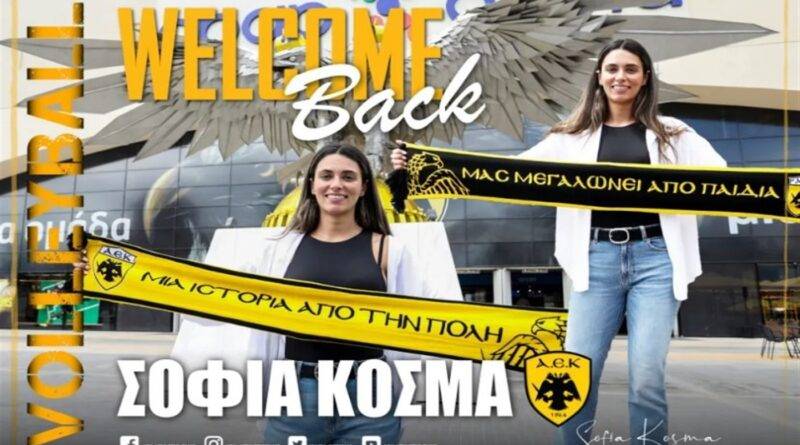 H AEK βρίσκεται στην ευχάριστη θέση να ανακοινώσει την έναρξη της συνεργασίας της με την Σοφία Κοσμά. Η 29χρονη (15/11/1993) αθλήτρια, ύψους 1,80 μ., υπέγραψε μονοετές συμβόλαιο και επιστρέφει στη γυναικεία ομάδα Βόλεϊ της ΑΕΚ.