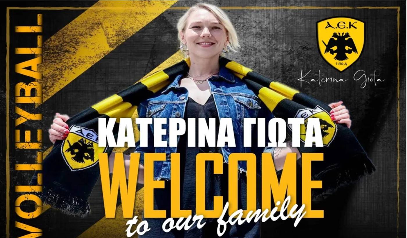 Η ΑΕΚ βρίσκεται στην ευχάριστη θέση να ανακοινώσει την έναρξη της συνεργασίας της με την Κατερίνα Γιώτα. Η 32χρονη (07/06/1990) διεθνής κεντρικός, ύψους 1,84 μ., υπέγραψε μονοετές συμβόλαιο και εντάσσεται στο δυναμικό της γυναικείας ομάδας Βόλεϊ του Συλλόγου.