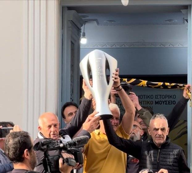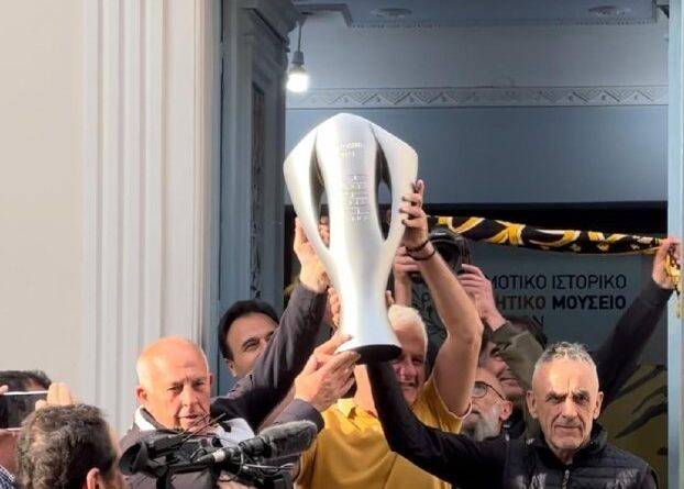 Με πολλά συνθήματα και έντονο ενθουσιασμό Τρικαλινοί αλλά και Καρδιτσιώτες φίλαθλοι της ΑΕΚ φωτογραφήθηκαν με το Κύπελλο του πρωταθλητή Stoiximan Super League που κατέκτησε η ομάδα τους.