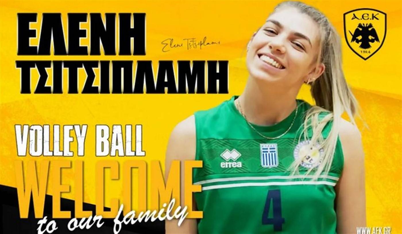 Η ΑΕΚ βρίσκεται στην ευχάριστη θέση να ανακοινώσει την έναρξη της συνεργασίας της με την Ελένη Τσιτσιπλάμη! Η 26χρονη (05/10/1996) διαγώνια, ύψους 1,82 μ., υπέγραψε μονοετές συμβόλαιο και εντάσσεται στο δυναμικό της γυναικείας ομάδας Βόλεϊ του Συλλόγου.