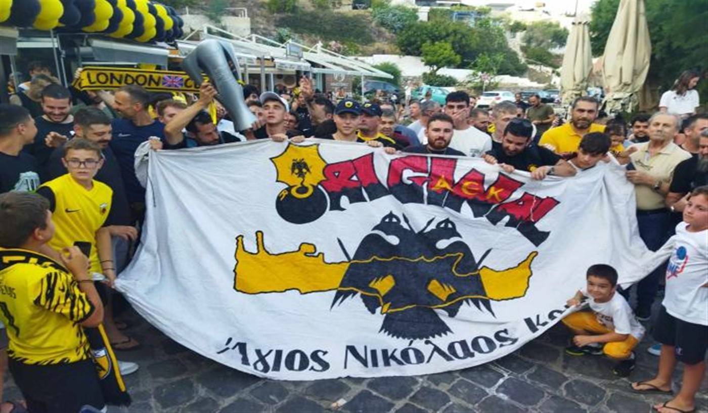 Πανηγυρική υποδοχή από τους φίλους της ΑΕΚ για το τρόπαιο του πρωταθλήματος στον Άγιο Νικόλαο