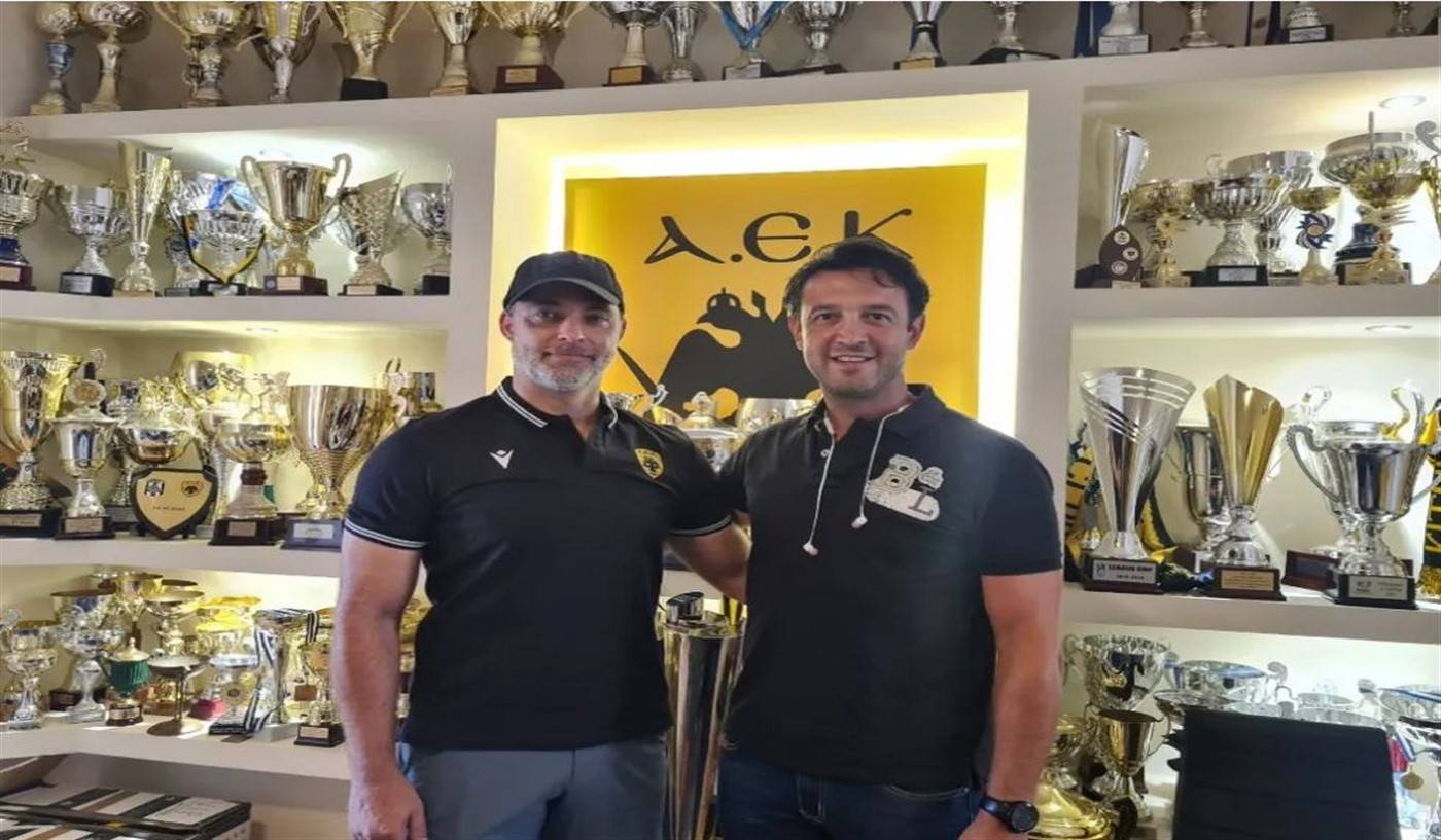 Τον νέο προπονητή της ομάδας, υποδέχθηκαν στα Γραφεία του Συλλόγου στη Νέα Φιλαδέλφεια, ο Γενικός Αρχηγός του Συλλόγου, Ηλίας Χατσίκας, και ο αρχηγός της Πρωταθλήτριας ΑΕΚ, Δημήτρης Καλδέρης.