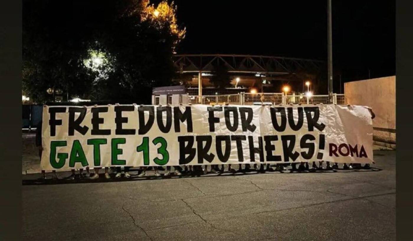 Ξεφτιλισμένη μια ζωή! Η Θύρα 13 «ανέβασε» πανό της Ρόμα που ζητά να απελευθερωθούν οι δολοφόνοι! (photo)