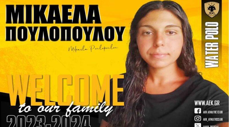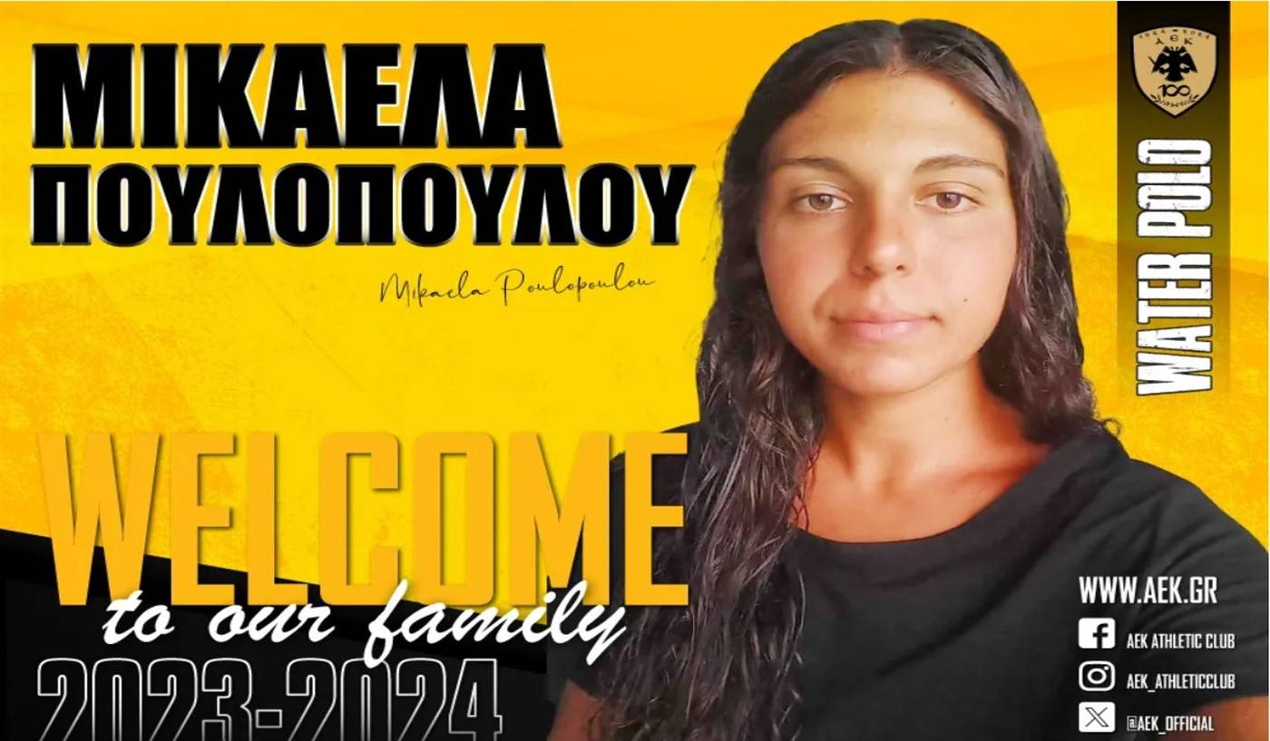 Η ΑΕΚ βρίσκεται στην ευχάριστη θέση να ανακοινώσει την έναρξη της συνεργασίας της με την Μικαέλα Πουλοπούλου. Η 23χρονη τερματοφύλακας υπέγραψε το συμβόλαιό της και εντάσσεται στο δυναμικό της γυναικείας ομάδας Πόλο του Συλλόγου.