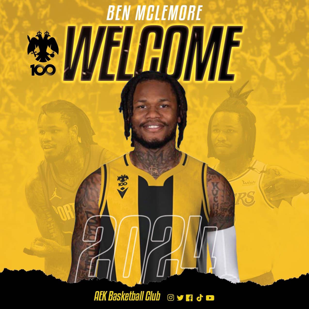 Η ΑΕΚ ΒC βρίσκεται στην ευχάριστη θέση ν’ ανακοινώσει, ότι συνήψε συμφωνία με τον αθλητή Μπεν Μάκλεμορ (Ben McLemore, 30 χρ., 1μ.96).