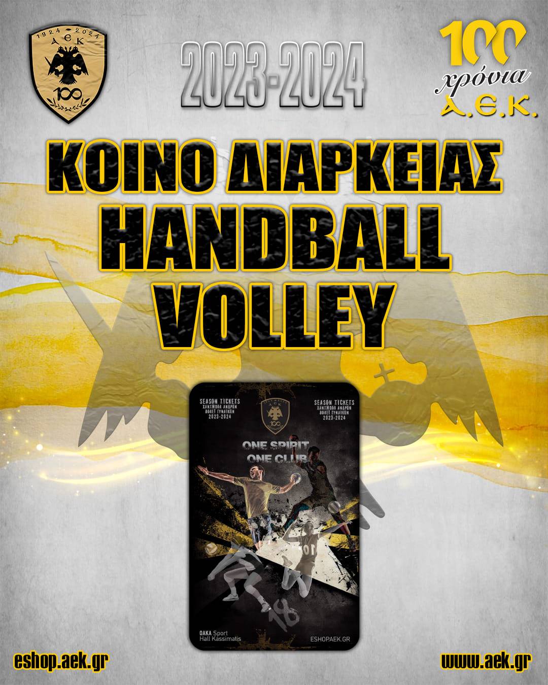 Με το ΚΟΙΝΟ ΕΙΣΙΤΗΡΙΟ ΔΙΑΡΚΕΙΑΣ 2023-24 «κλείνεις» θέση στην αίθουσα «Γ. Κασιμάτης» του ΟΑΚΑ και στηρίζεις τα τμήματα ΧΑΝΤΜΠΟΛ ΑΝΔΡΩΝ και ΒΟΛΕΪ ΓΥΝΑΙΚΩΝ σε Ελλάδα και Ευρώπη!