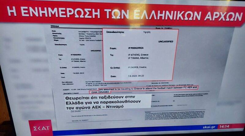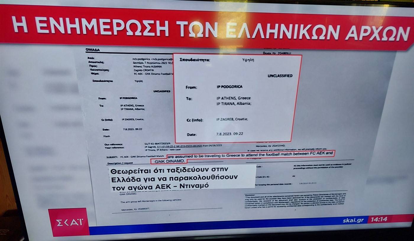 Στο σχετικό έγγραφο, υπήρχε η επισήμανση ότι περίπου 120 άτομα, τα οποία χαρακτηρίζονται «επικίνδυνοι οπαδοί» πέρασαν από τα σύνορα με πιθανό προορισμό την Αθήνα για το παιχνίδι της ΑΕΚ με τη Ντιναμό Ζάγκρεμπ. Στα άτομα αυτά έγιναν έλεγχοι και στο έγγραφο υπάρχουν οι αριθμοί των πινακίδων κυκλοφορίας των αυτοκινήτων που πέρασαν τα σύνορα στο Μαυροβούνιο, όπως ο τύπος των οχημάτων και οι μάρκες τους.