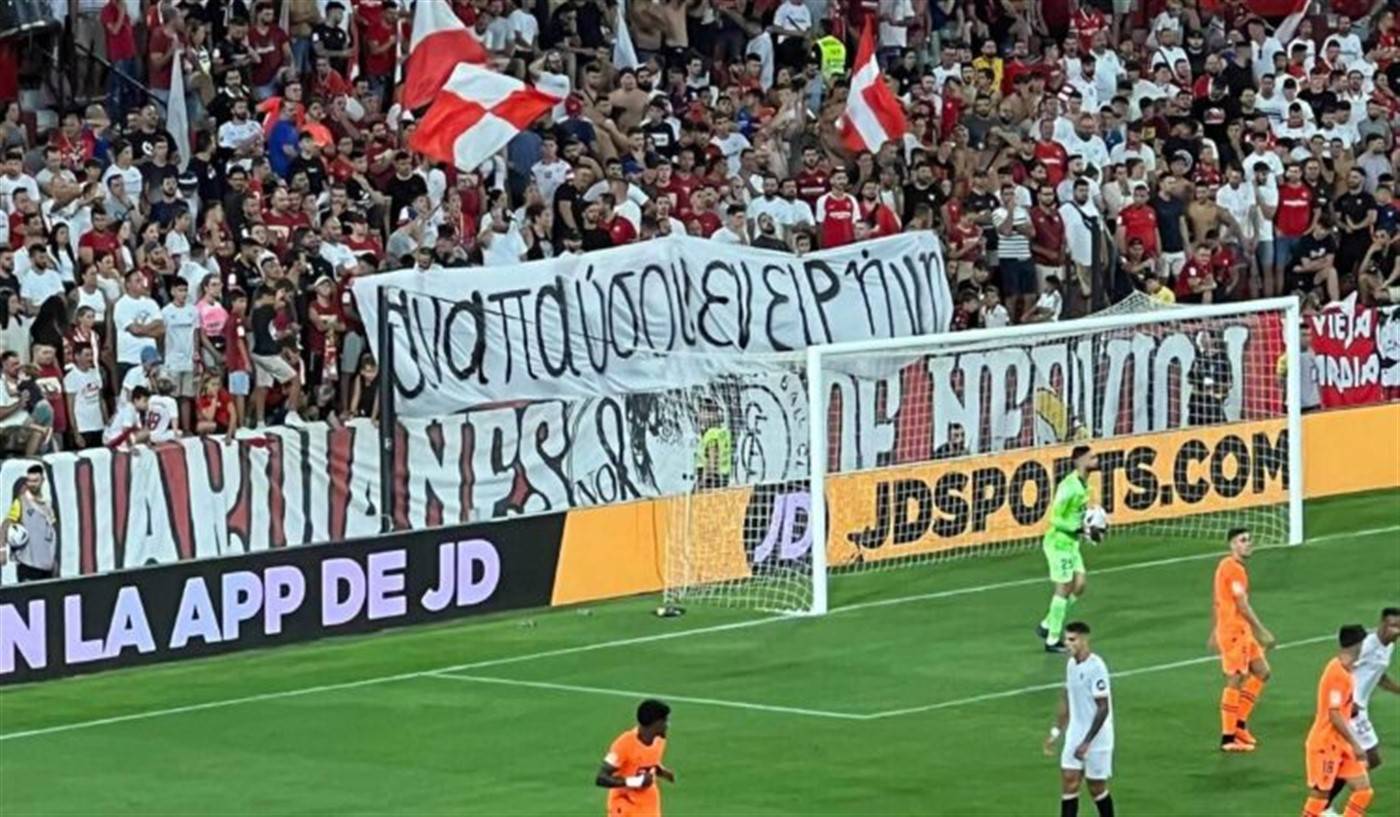 Συγκεκριμένα, κατά τη διάρκεια του αγώνα με τη Βαλένθια, για την πρεμιέρα του ισπανικού πρωταθλήματος, οι οργανωμένοι οπαδοί των Ανδαλουσιάνων, εμφάνισαν πανό, γραμμένο στα ελληνικά, που έγραφε «Αναπαύσου εν ειρήνη».