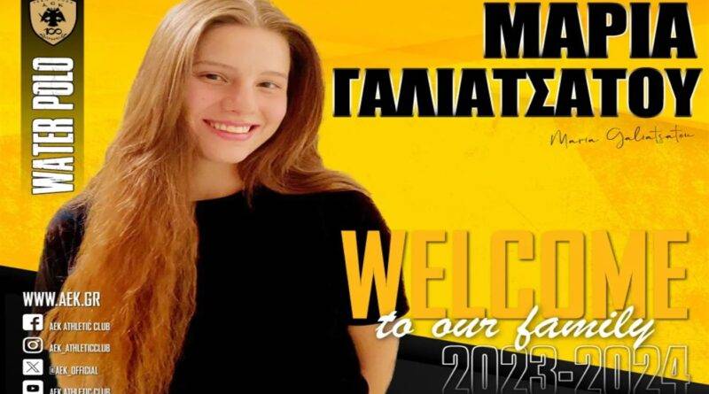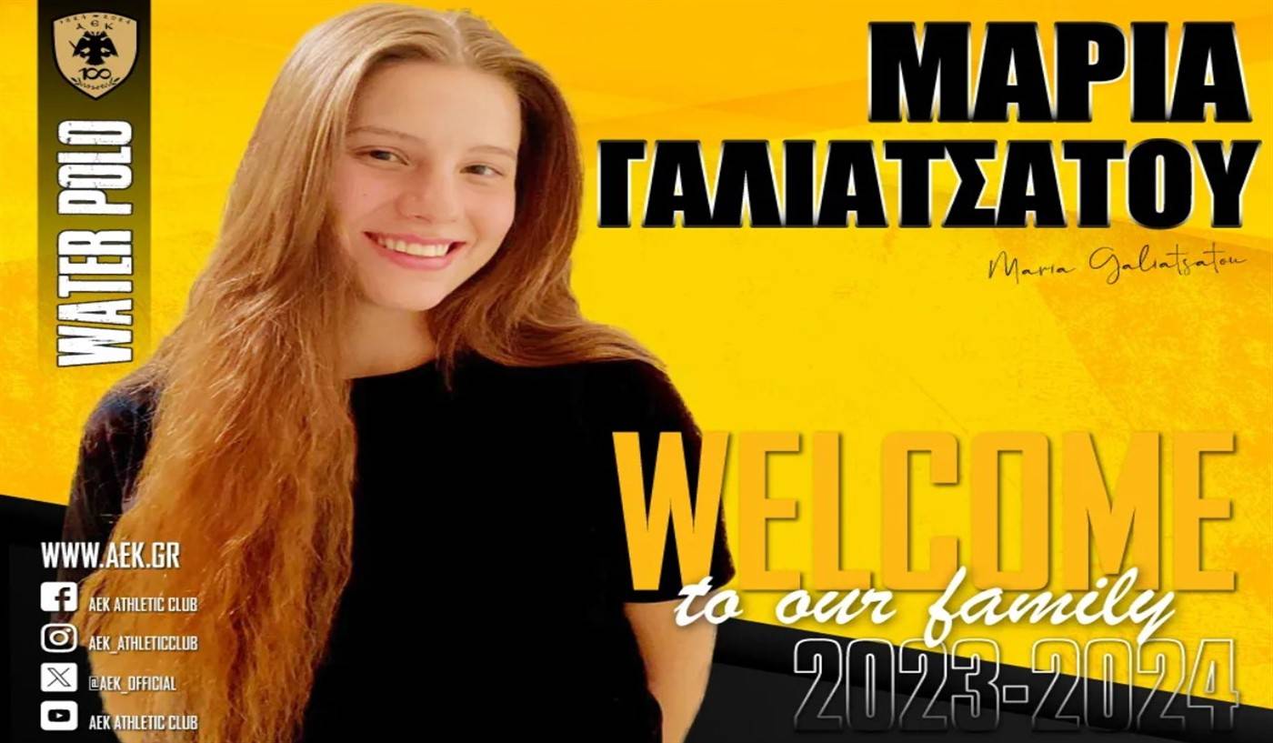 Η ΑΕΚ βρίσκεται στην ευχάριστη θέση να ανακοινώσει την έναρξη της συνεργασίας της με την Μαρία Γαλιατσάτου. Η 22χρονη (12/12/2001) περιφερειακός υπέγραψε το συμβόλαιό της και εντάσσεται στο δυναμικό της γυναικείας ομάδας Πόλο του Συλλόγου.