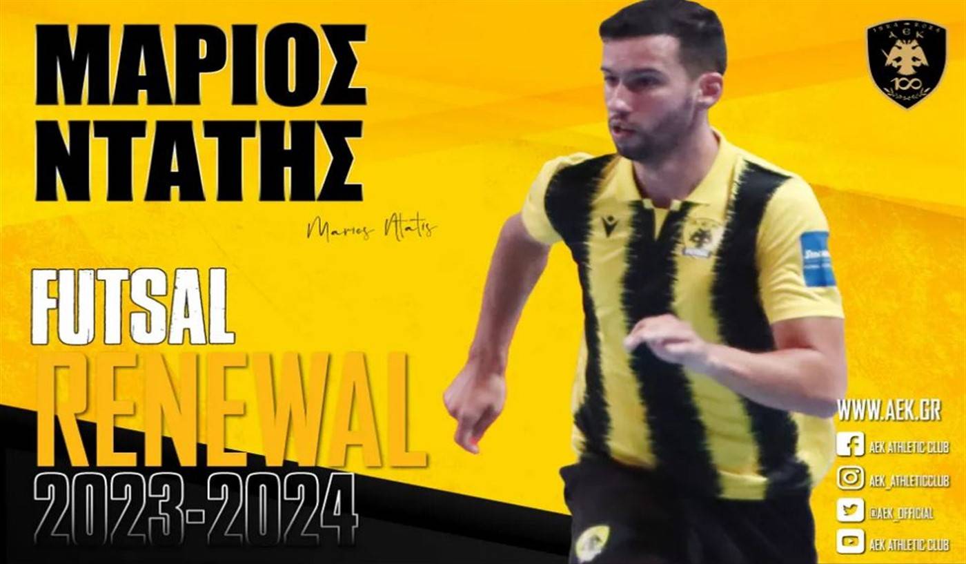Η ΑΕΚ βρίσκεται στην ευχάριστη θέση να ανακοινώσει την ανανέωση της συνεργασίας της με τον Μάριο Ντάτη. Ο 28χρονος (20/12/1994) διεθνής άσσος θα παραμείνει στο δυναμικό της ανδρικής ομάδας Futsal του Συλλόγου.
