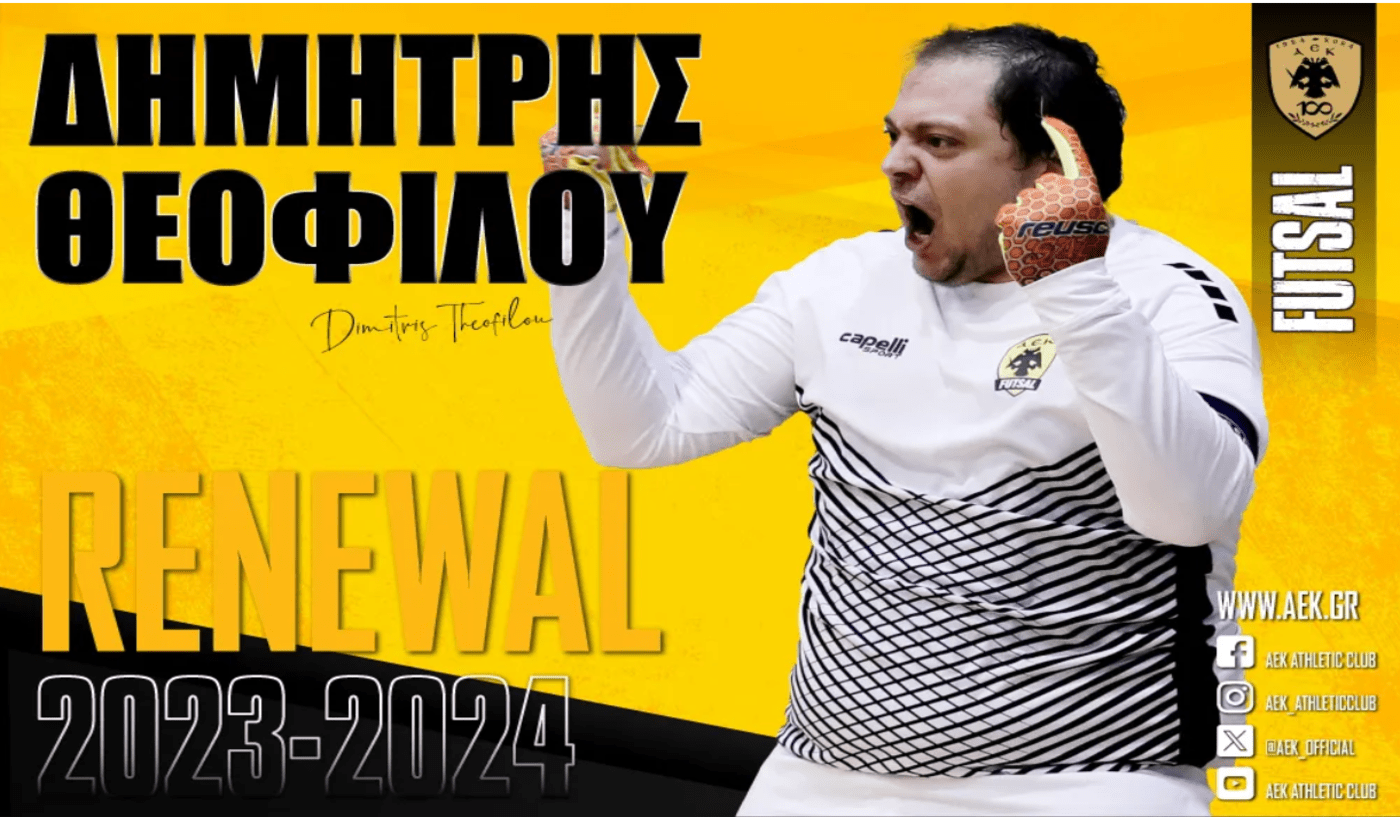 Η ΑΕΚ βρίσκεται στην ευχάριστη θέση να ανακοινώσει την ανανέωση της συνεργασίας της με τον Δημήτρη Θεοφίλου. Ο πολύπειρος διεθνής τερματοφύλακας υπέγραψε το νέο του συμβόλαιο και θα συνεχίσει να υπερασπίζεται την εστία των Κυπελλούχων Ελλάδας.