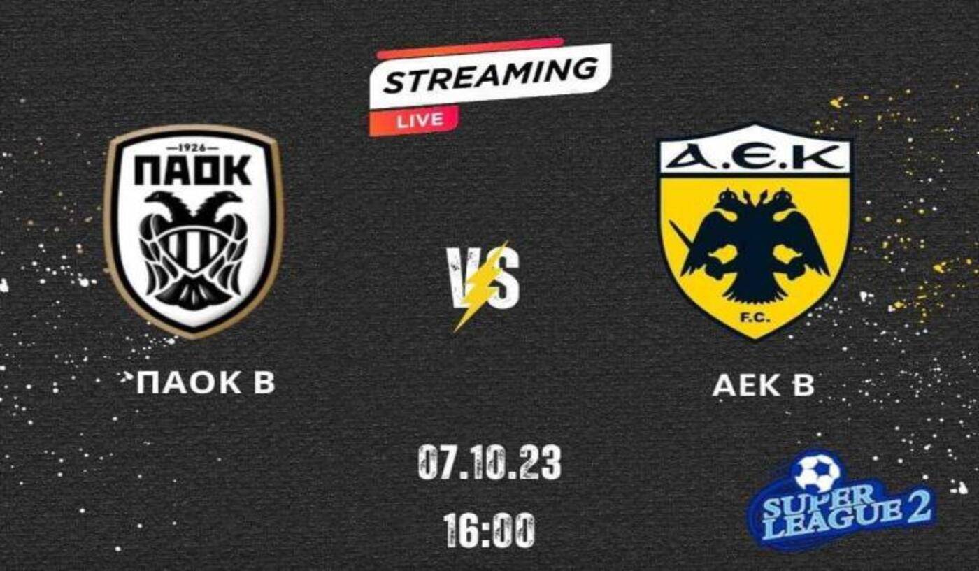 Η ΑΕΚ Β φιλοξενείται στη Θεσσαλονίκη από τον ΠΑΟΚ Β για την 3η στροφή του πρωταθλήματος της Super League 2. Σέντρα στις 16:00.