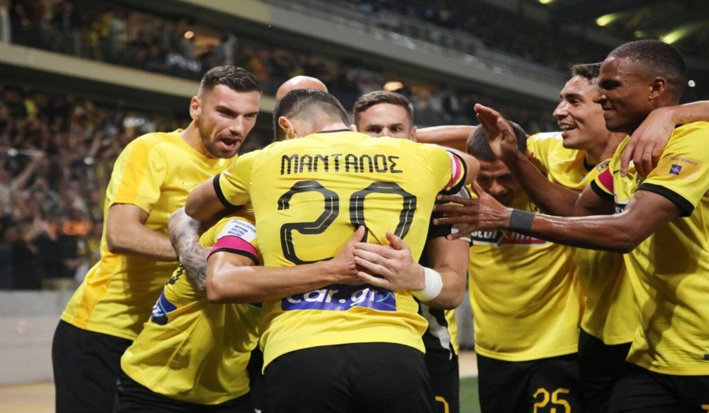 Στο πρώτο ημίχρονο η ΑΕΚ επιθετικά απείλησε μόνο με τρεις σέντρες και ισάριθμες κεφαλιές. Τίποτα άλλο! Κι όμως, ήταν υπεραρκετό για να «αγγίξει» το γκολ στο 13΄ (κεφαλιά στο δοκάρι του Πόνσε από σέντρα Ελίασον) και να το πετύχει στο 17΄. Μια καταπληκτική ασίστ του Μάνταλου στον ελεύθερο Πινέδα και μια εξίσου υπέροχη κεφαλιά του Μεξικανού, σε μια φάση που ξεκίνησε από λάθος πάσα του Κοτάρσκι.
