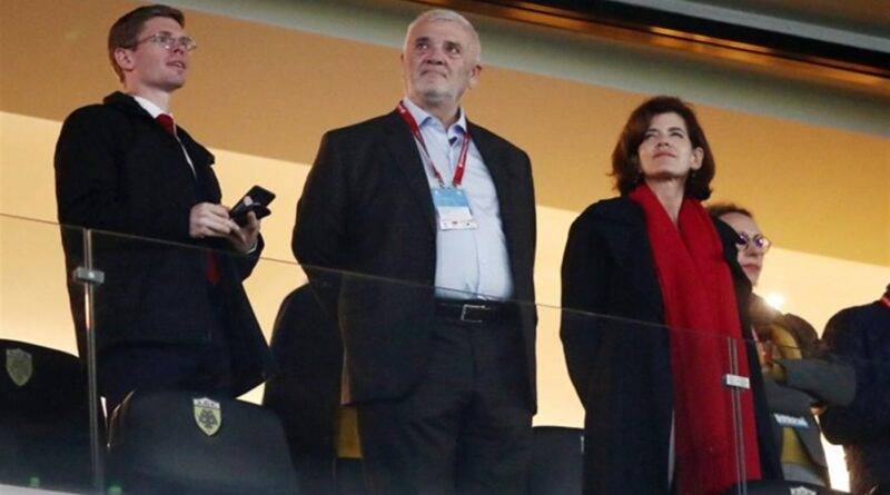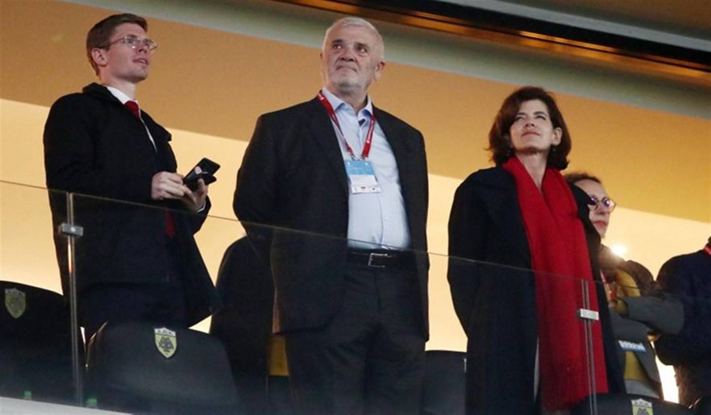Φιλοξενούμενη στη σουίτα του Δημήτρη Μελισσανίδη, η Laurence Auer παρακολούθησε το παιχνίδι των εθνικών ομάδων μαζί με τον διοικητικό ηγέτη της ΑΕΚ και τον Ματίας Αλμέιδα (που επίσης βρέθηκε εκεί με τους συνεργάτες του).
