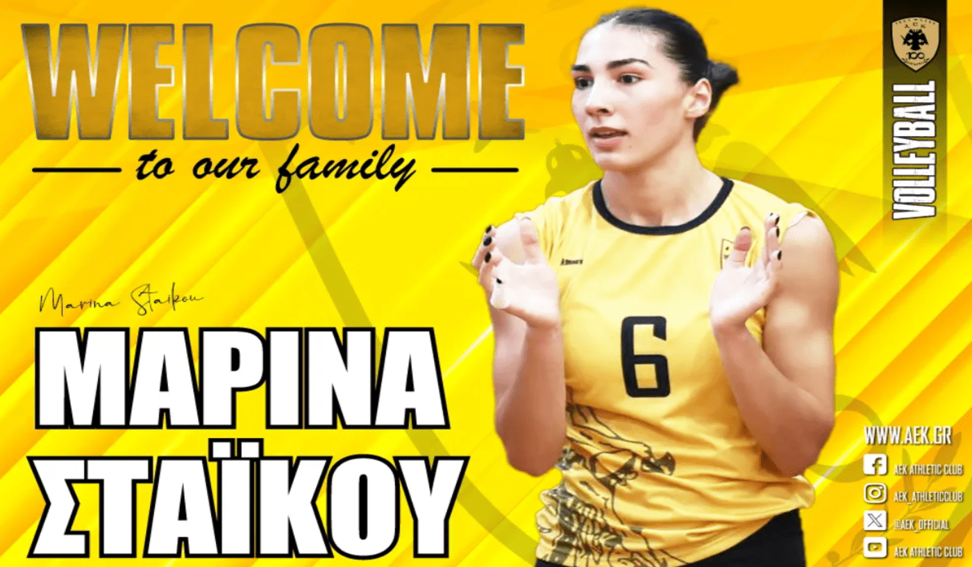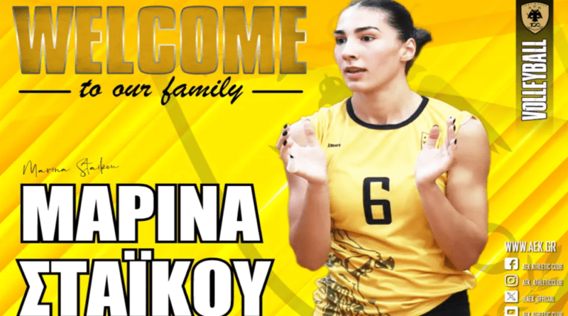 Η ΑΕΚ ανακοινώνει την έναρξη της συνεργασίας της με την Μαρίνα Στάικου. Η 19χρονη (24/08/2004) πασαδόρος, ύψους 1,76 μ., υπέγραψε το συμβόλαιό της και εντάσσεται στο δυναμικό της γυναικείας ομάδας Βόλεϊ του Συλλόγου.
