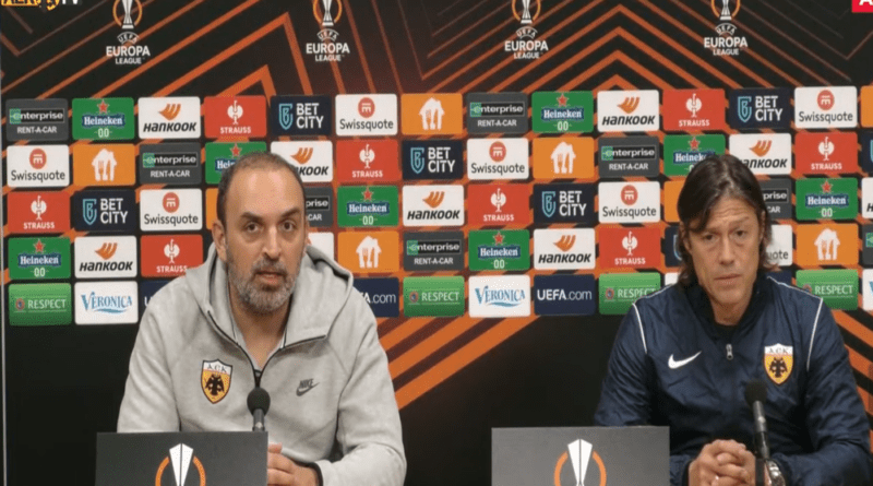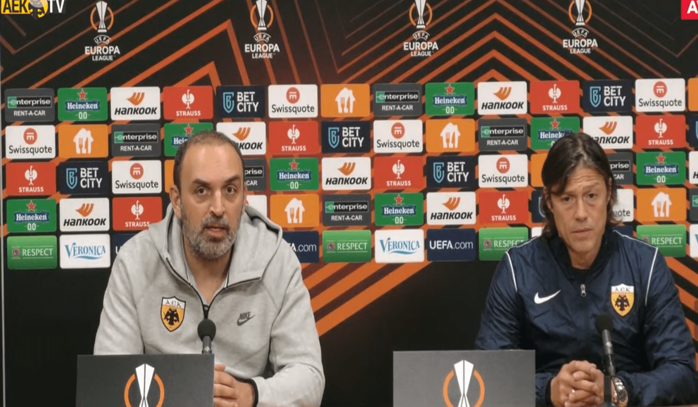 Ο Ματίας Αλμέιδα και ο Πέτρος Μάνταλος μιλούν για την αυριανή αναμέτρηση της ΑΕΚ με τον Άγιαξ, στην Ολλανδία, για την 6η αγωνιστική των ομίλων του UEFA Europa League.